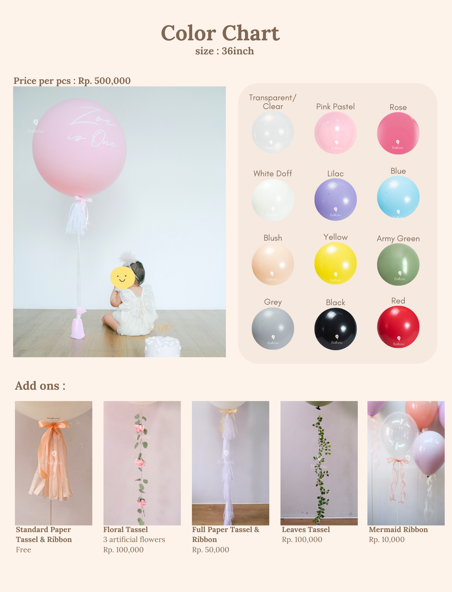 balon 36″ latex helium + tulisan + tassel dan pita
