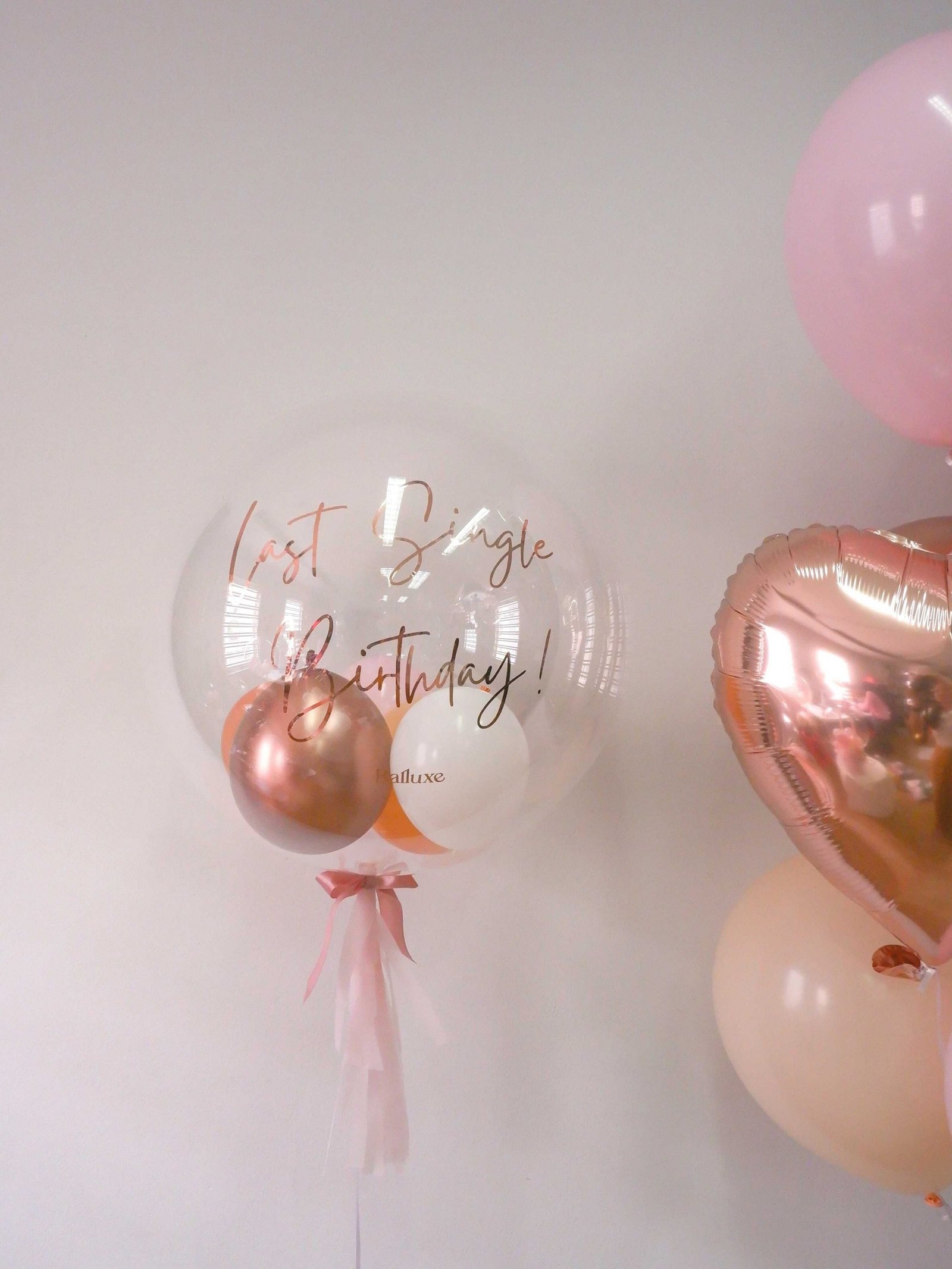 • 1 pcs 24″ transparent helium balloon with rose gold text